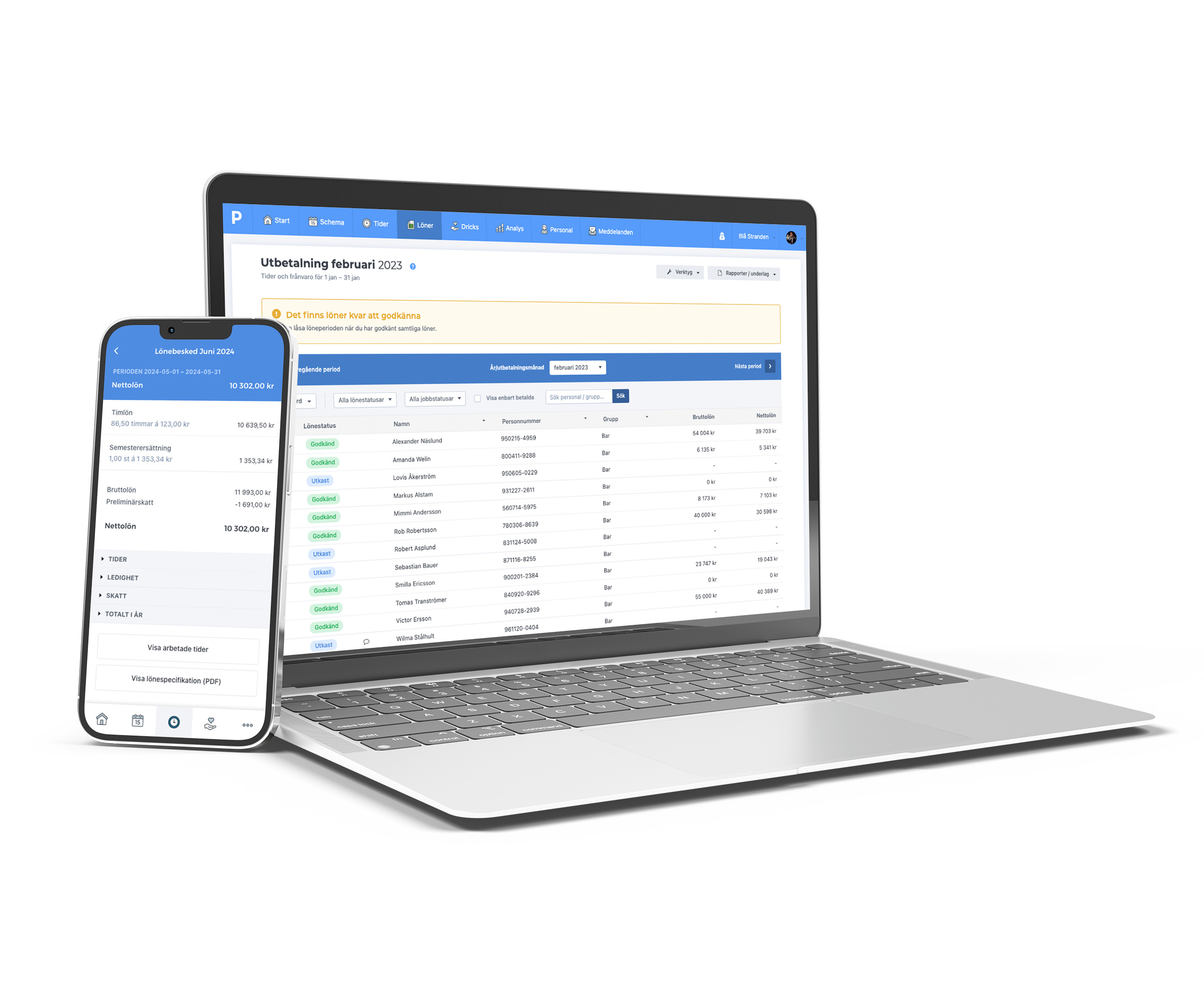 Med Personalkollen skickas all rapporterad tid automatiskt till löneberedningen vilket gör lönehanteringen smidig utan att det behöver ta för mycket av någons tid. Ni attesterar avvikelser och registrerar frånvaro, sedan hanterar systemet beräkningar av frånvaro, OB och semester helt automatiskt utefter gällande anställningsavtal. Tillämpar ni beräkningsperioder sker också utbetalning av mer- eller övertid helt automatiskt.