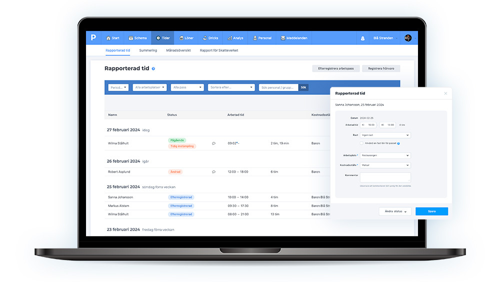 Smidig hantering – från rapporterad tid till färdiga löneunderlag.